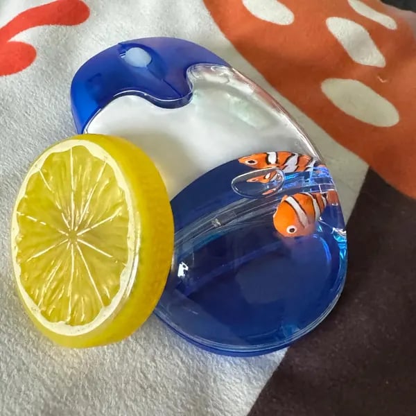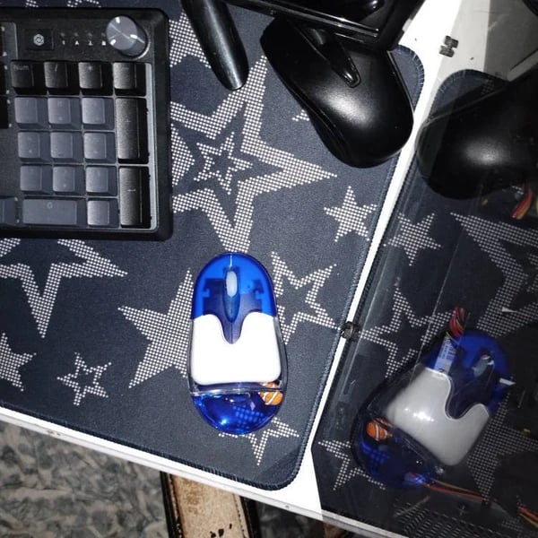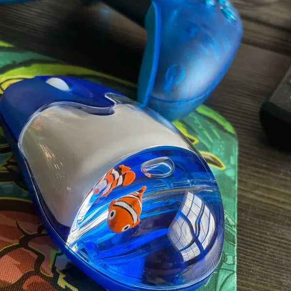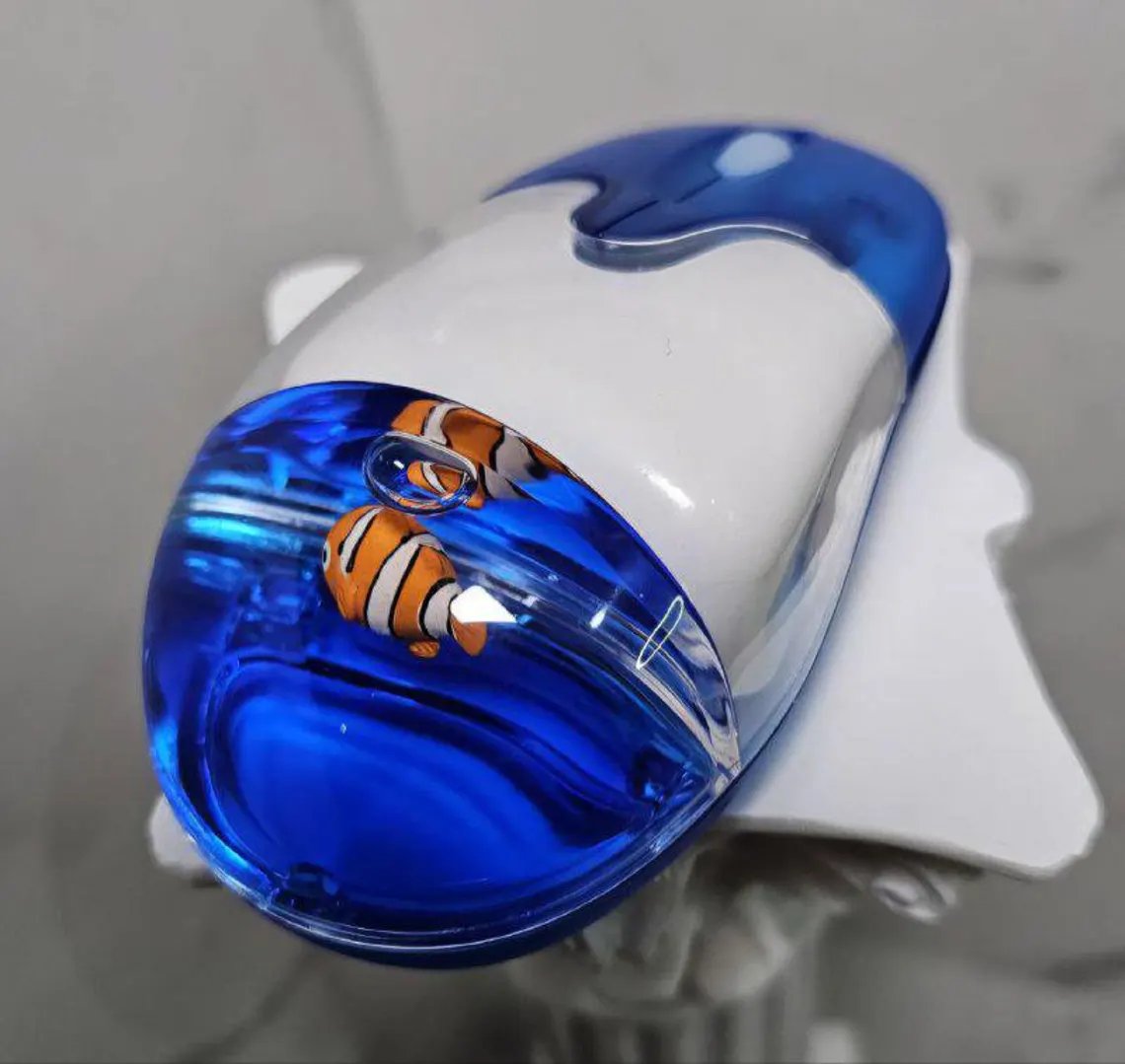 Designed for fans of early 2000s tech and retro nostalgia, the mouse brings the Frutiger Aero aesthetic to life on your desk – think Windows XP vibes, translucent colors, and a cute floating clownfish charm inside!