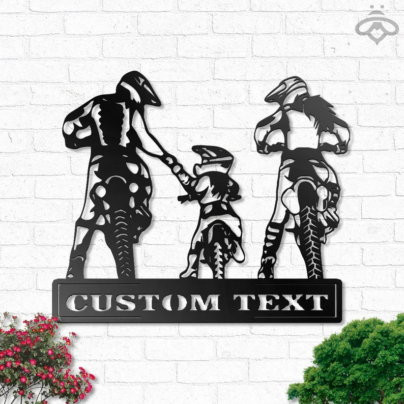 Custom Motocross Family Dad Mom Daughter Metal Wall Art Sign