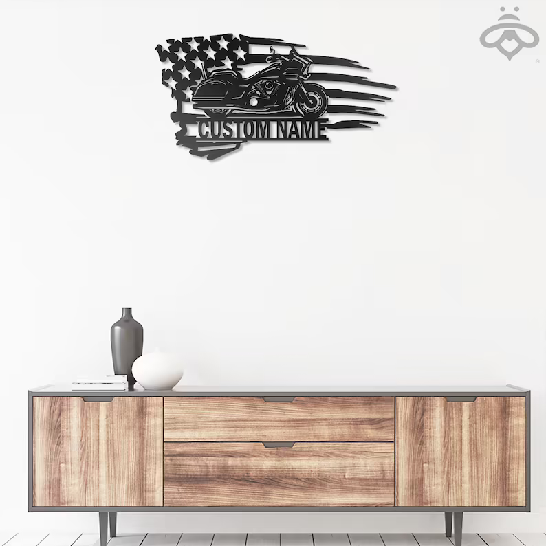 Custom Motorcycle Metal Wall Art-Personalized Motorcycle Garage Name Sign Decoration For Living Room, Biker