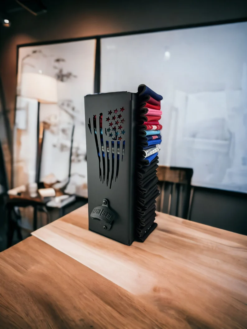 This custom metal can cooler dispenser is our iteration of a popular product!
