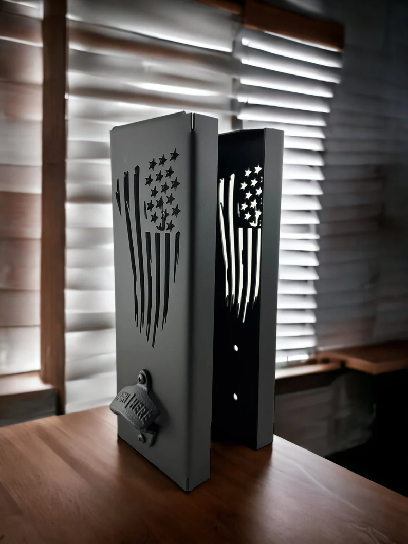 The can cooler holder has 2 holes on the back for easy installation and can be used to mount a bottle opener on either side.