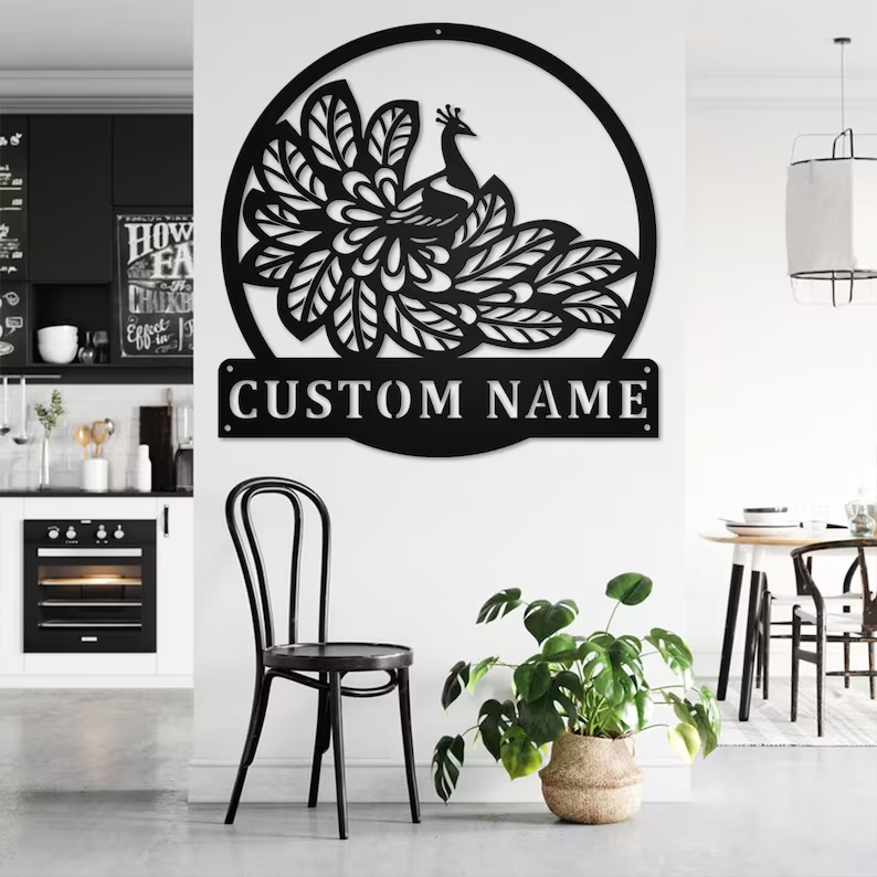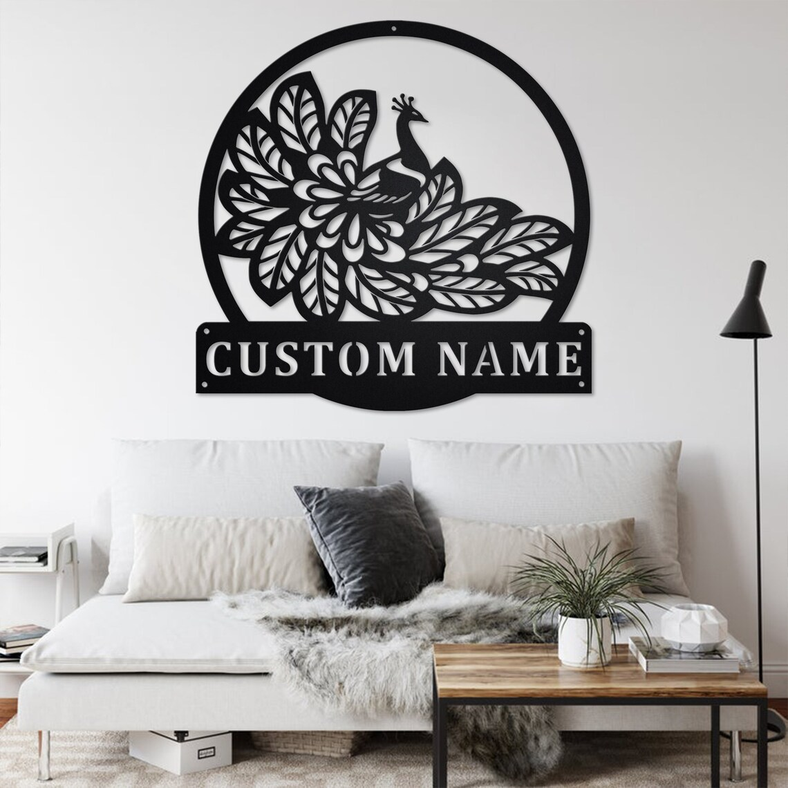 Custom Peacock Metal Wall Art, Personalized Peacock Name Sign Decoration For Room [Buy 2 Free Shipping]