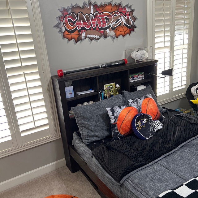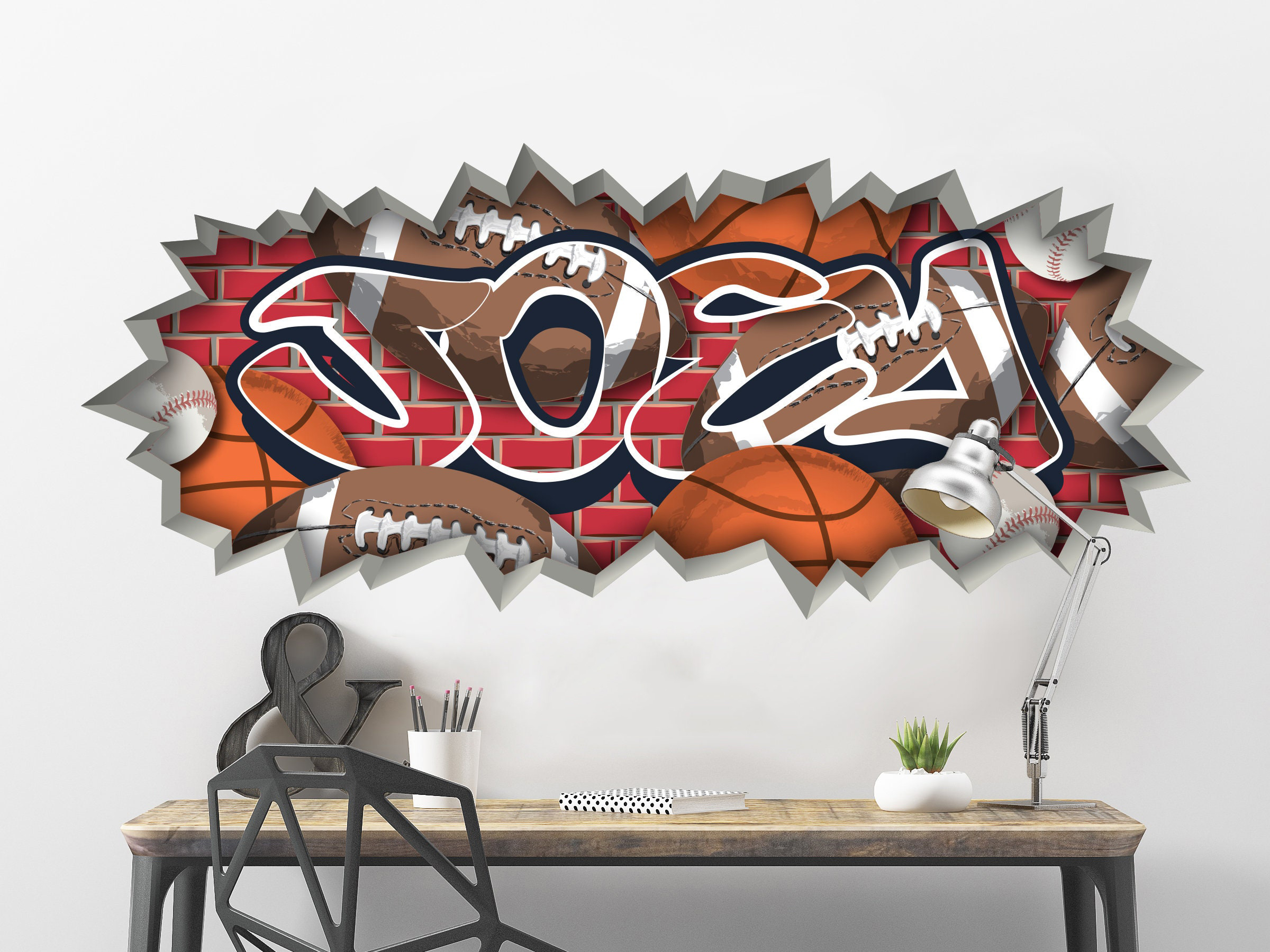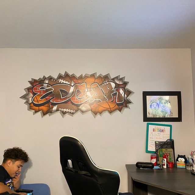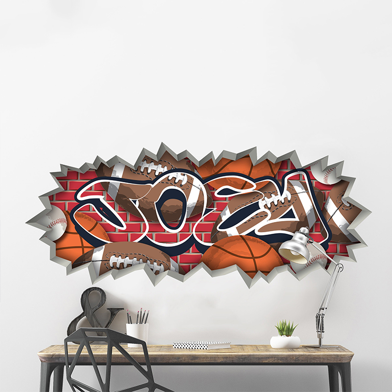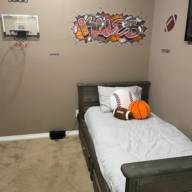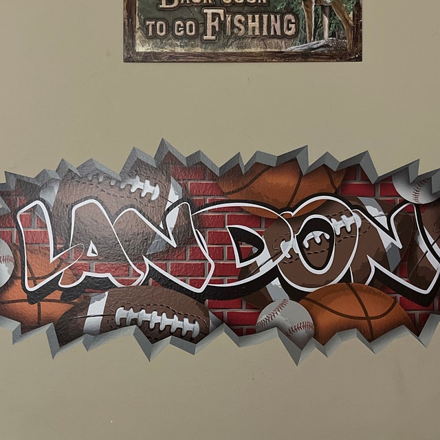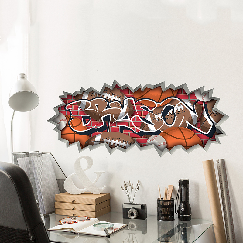 So cool, ball doodle stickers with personalized names are the best decoration for boys' room! Give your young one the bold art he deserves with his own one-of-a-kind graffiti wall graphics.
